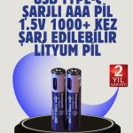 Tekrar Şarj Edilebilir AA USB Type-C Pil | 1000+ Döngü | 1.5V Sabit Voltaj