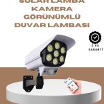 Güneş Enerjili LED Lamba + Güvenlik Kamerası Görünümlü– 5-8 m Hareket Algılamalı Beyaz Işık
