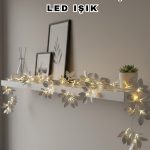 Yaldızlı Gümüş Yaprak LED Işık Pilli Dekoratif Ortam ve Yılbaşı Aydınlatması
