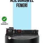 USB Şarjlı Çok Amaçlı El Feneri Çekiçli Pusulalı
