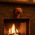 Dekoratif Asılabilir Jaguar Başı 3D Duvar Heykeli Gold Red 20x16 cm
