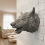 Asılabilir Gri Kurt Heykeli Ev Ofis Duvar Süslemesi Dekoratif