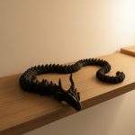 Hareketli Siyah Ejderha Figür Uzun Gövdeli Fantastik Masa ve Raf Dekoru
