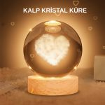 Ahşap Standlı LED Kristal Küre Lazer İşlemeli Dekoratif Obje
