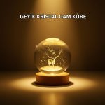 USB Bağlantılı Geyik Temalı Kristal Küre Premium Masa Gece Lambası