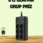 2500W Güçlü 6’lı Priz USB ve Type-C Çıkışlı Termal Korumalı