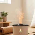 Aromaterapi Difüzörü Alev Efektli LED Işıklı Sessiz Hava Nemlendirici Otomatik Kapanma