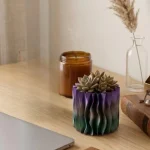 Modern Dalgalı Yüzey Tasarımlı Mor 3D Dekoratif Saksı Vazo