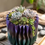 Estetik Dalga Formlu Mor 3D Baskı Dekoratif Vazo Modern Ev Aksesuarı