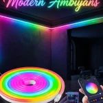 Dekoratif RGB LED Şerit Neon Işık 3 Metre Su Geçirmez Uzaktan Kumandalı Ortam Aydınlatması