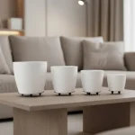 4’lü 3D Beyaz Ayaklı Saksı Seti Modern Minimal Dekoratif Vazo
