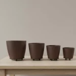 4’lü 3D Kahve Tonlu Ayaklı Saksı Seti Modern Dekoratif Vazo Takımı