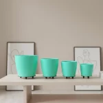 4’lü 3D Ayaklı Yeşil Saksı Seti Dekoratif Modern Tasarım
