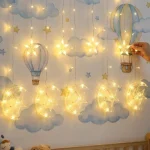 Dekoratif Ay Yıldız Perde Işığı Sıcak Beyaz Festival ve Ev Süsleme