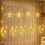 Hilal Yıldız Perde LED Işık 2 Modlu Sıcak Beyaz Dekoratif Aydınlatma