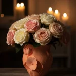 3D Kabartmalı Çiçek Motifli Turuncu Dekoratif Vazo