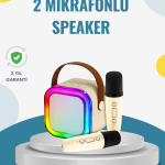 Kablosuz Karaoke Hoparlör – Çift Mikrofon ve LED Işıklı