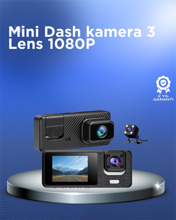 1080P 3 Kameralı Araç DVR – Döngü Kayıt ve Geri Görüş Özellikli