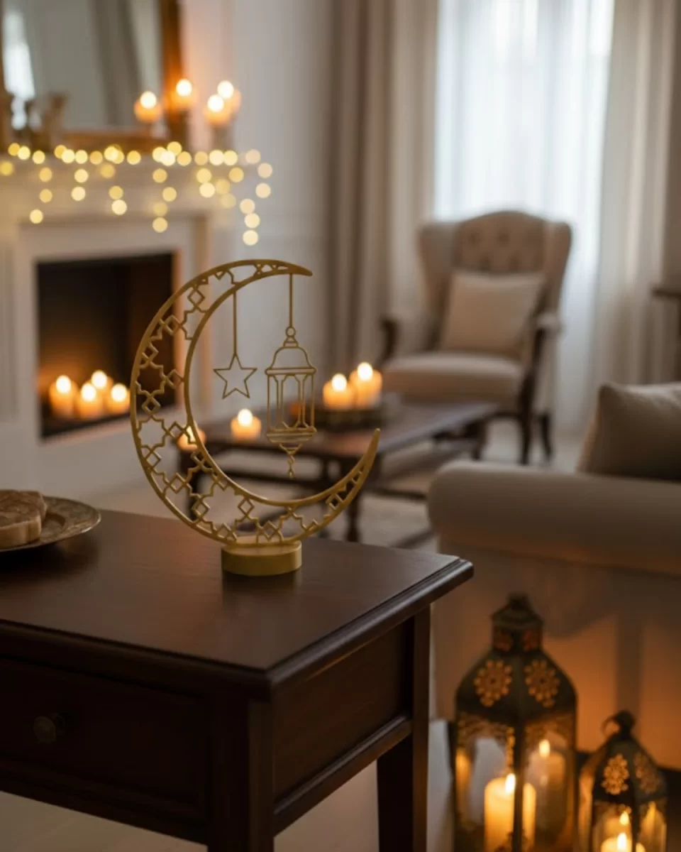 3D Hilal Cami Dekor 20×20 cm Özel Baskı Masa Üstü Süs