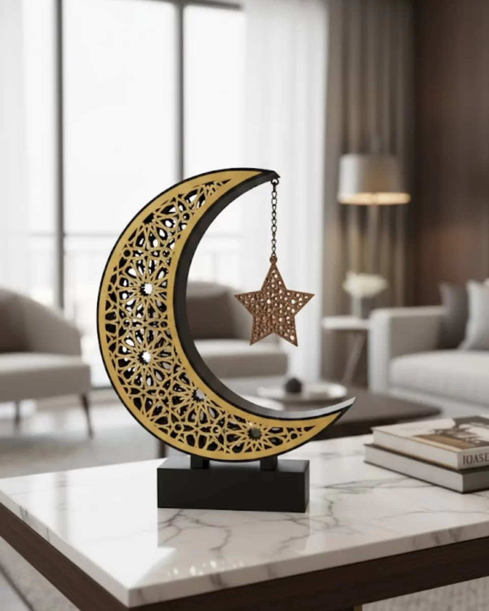 3D Hilal Yıldız Masa Üstü Dekor 23×23 cm Ramazan Konsept Tasarım