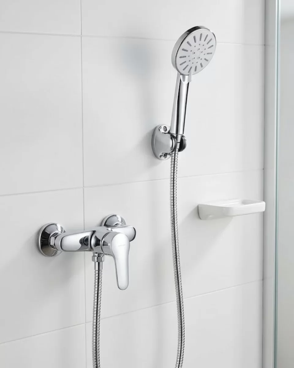 4 Fonksiyonlu Krem El Duşu Seti Spiral Hortum ve Duş Askısı