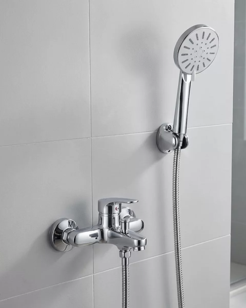 4 Kademeli Krem Duş Seti El Duşu Başlığı Spiral Hortum ve Duvar Askısı