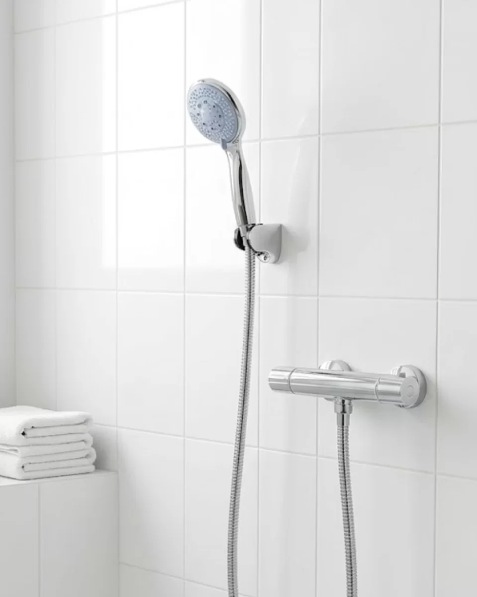 4 Kademeli Mavi Duş Seti El Duşu Başlığı Spiral Hortum ve Duvar Askısı
