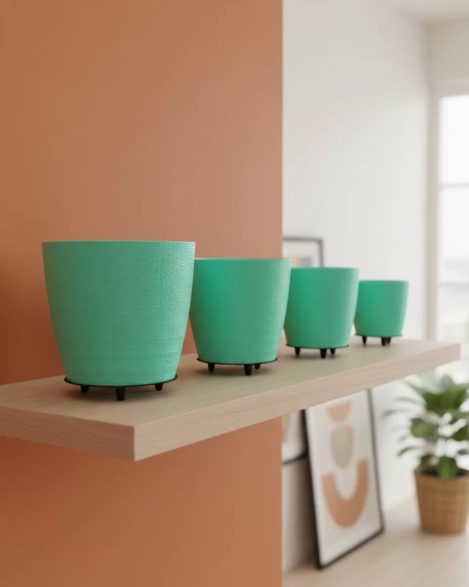4’lü 3D Modern Yeşil Vazo Seti Dekoratif Ayaklı Saksı Takımı