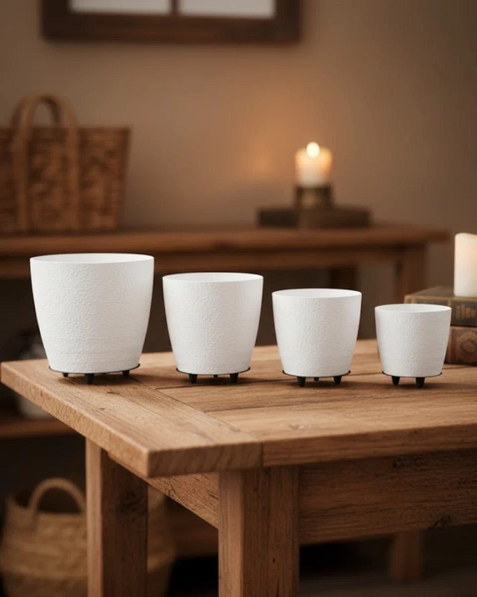4’lü 3D Şık Beyaz Saksı Seti Modern Ayaklı Dekoratif Vazo