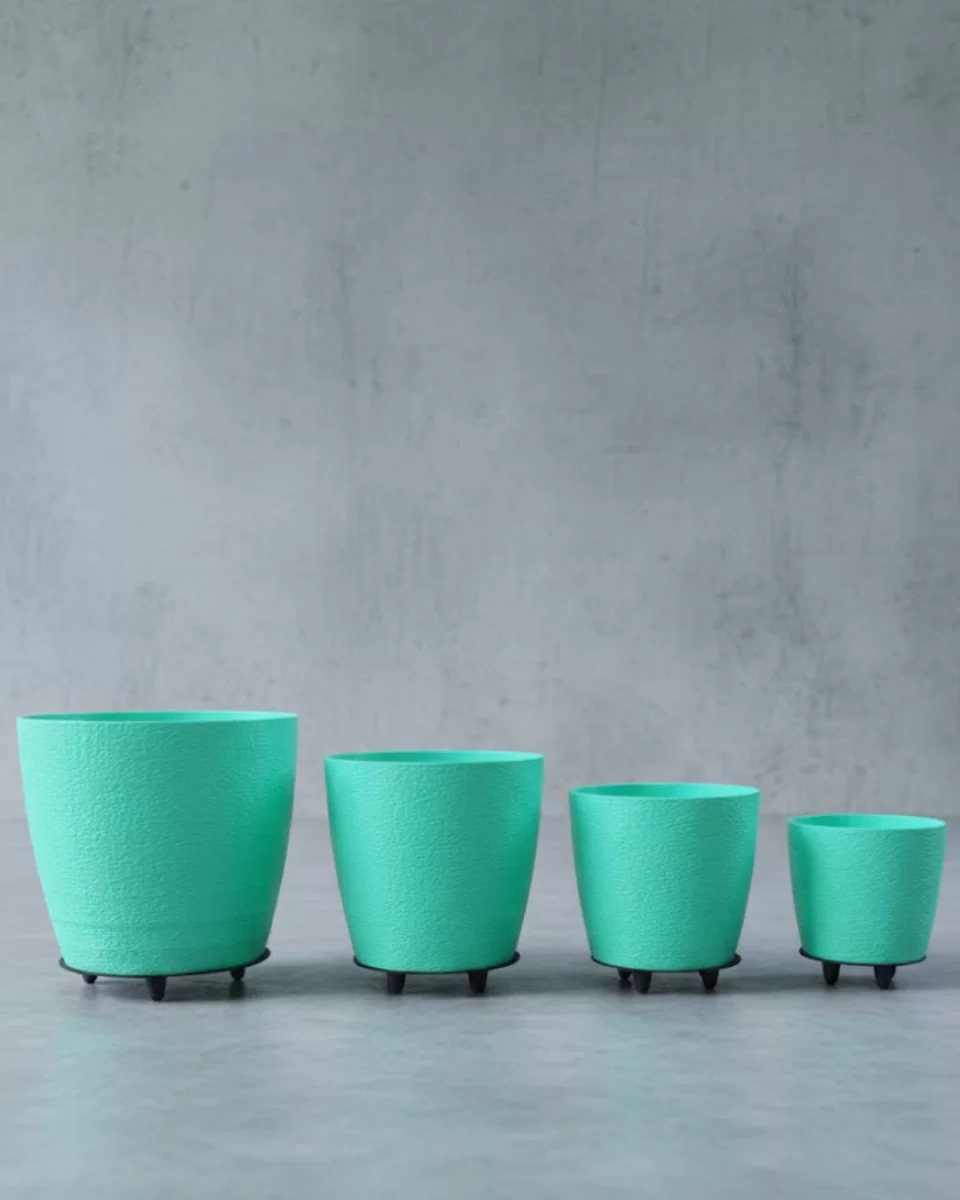 4’lü 3D Yeşil Dekoratif Saksı Takımı Ayaklı Modern Vazo Seti