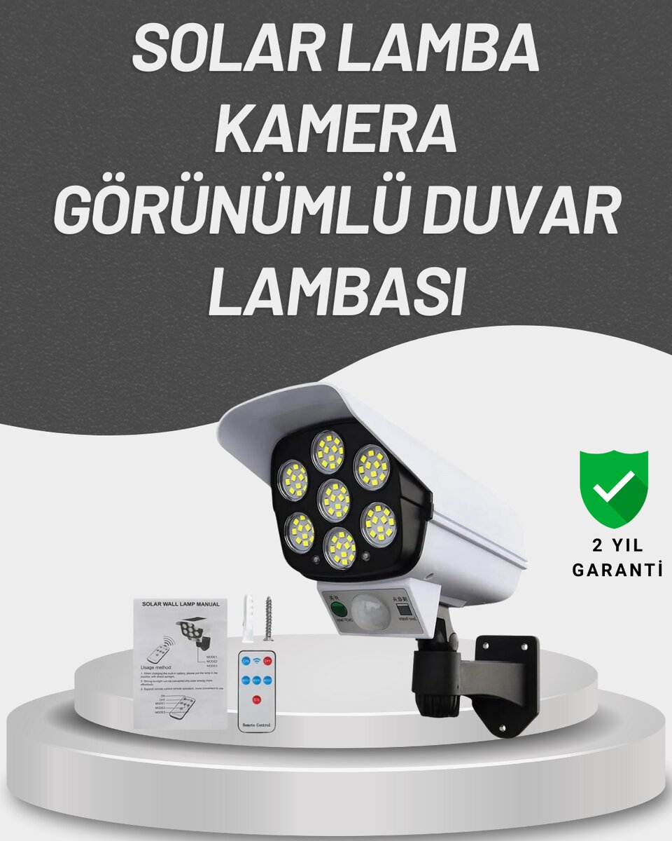 77 LED’li Güneş Enerjili Güvenlik Lambası ve Kukla Kamera – Hareket Sensörlü 2400mAh Pilli