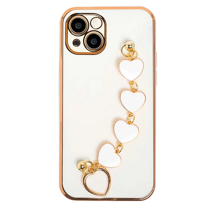 Ally iPhone 13 6.1inç Kılıf Kalp Bileklik Tutuculu Lüx Silikon Askılı Kılıf-(5775)
