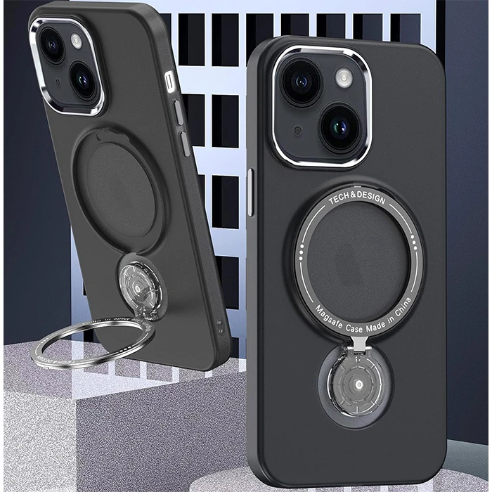 ALLY iPhone 14 İçin Magsafe Uyumlu Standlı Manyetik Silikon Kılıf-(5775)