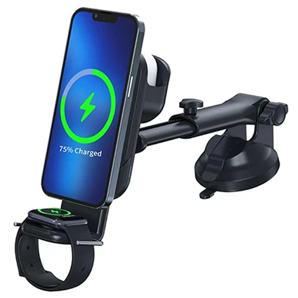 Ally Wireless Şarjlı 3in1 Torpido Üstü Ve Havalandırma Telefon Kulaklık Saat Tutucu-(5775)