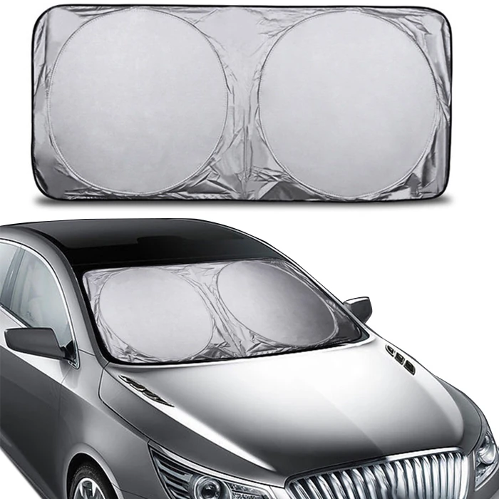 Araç Oto Ön Cam Çift Daireli Gümüş Kaplama Güneş Kalkanı Branda-(5775)