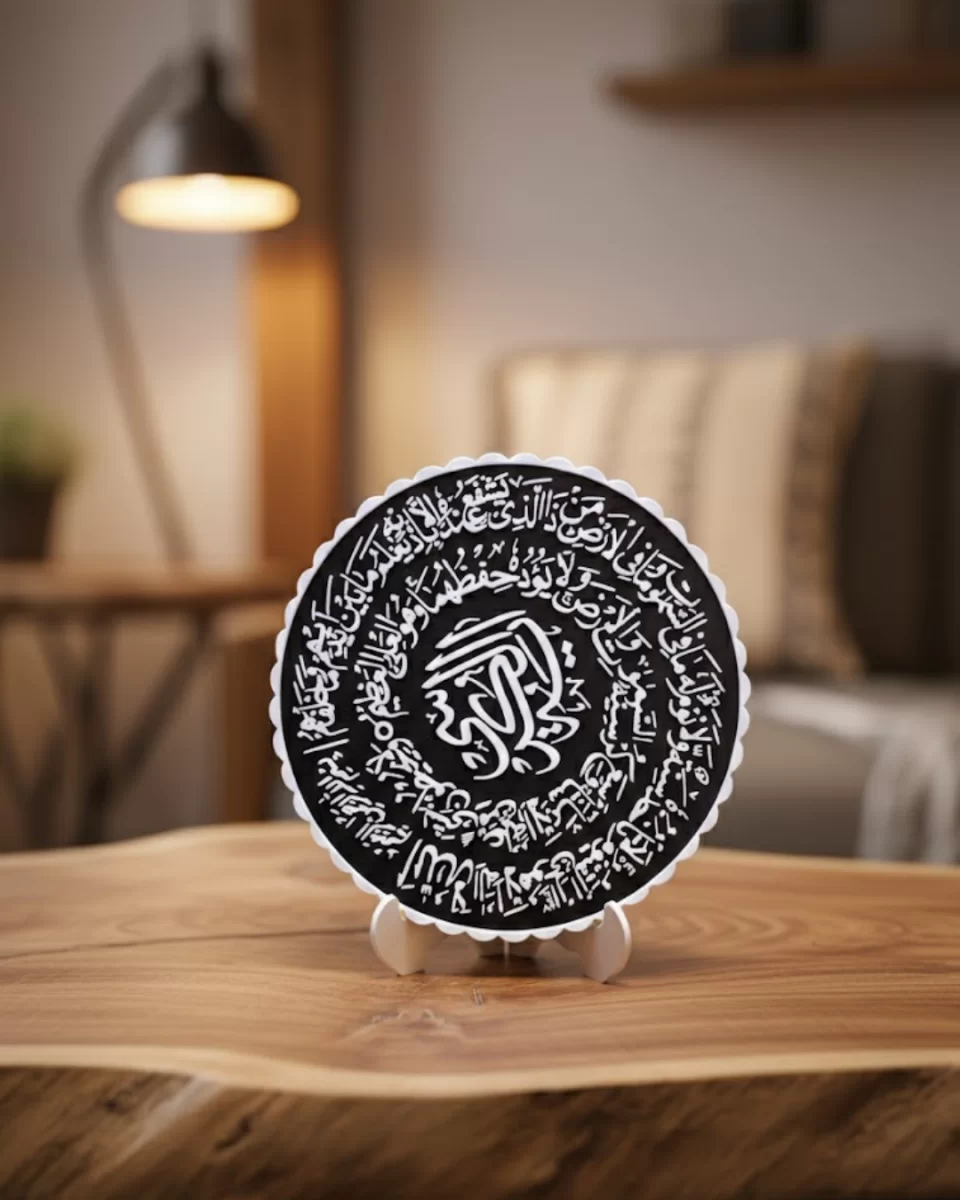 Ayetel Kürsi Siyah Zemin Üzeri Beyaz Yazılı Şık Masaüstü Pano