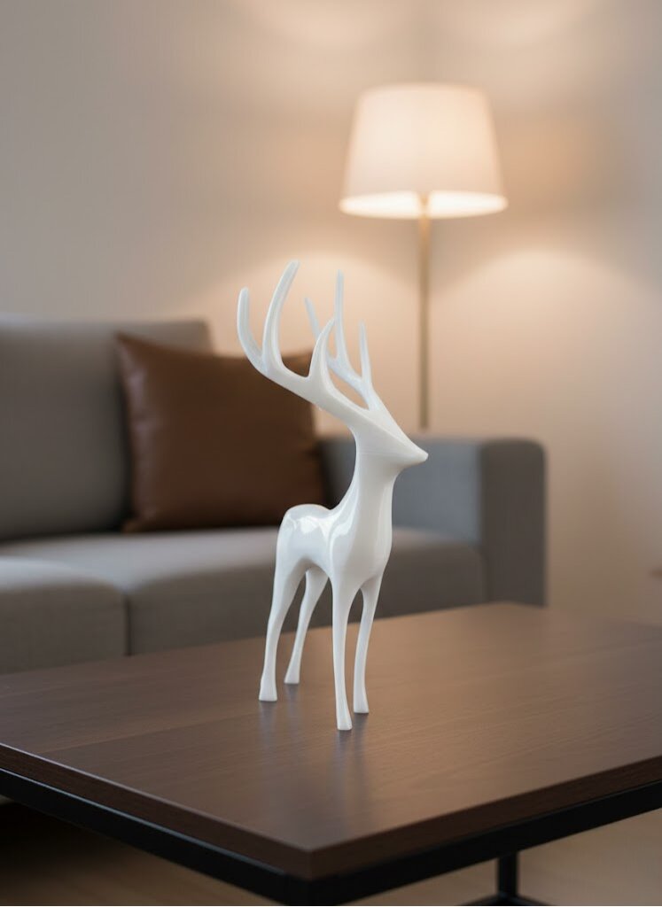 Beyaz Dekoratif Geyik Figürü Şık Ev Aksesuarı