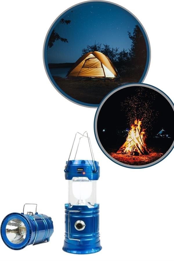 Büyük Boy Güneş Enerjili Kamp Feneri Işıldak Lamba USB Şarjlı
