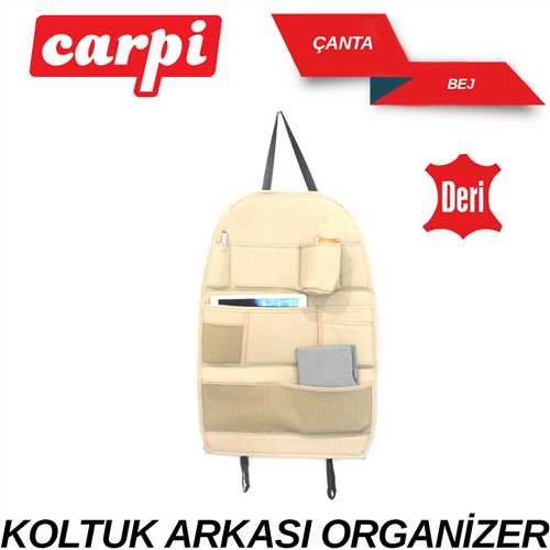 Ceplik Koltuk Arkasi Organizer Deri Bej Çantali