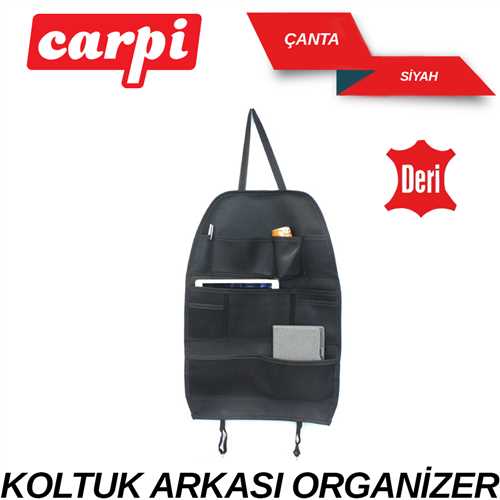 Ceplik Koltuk Arkasi Organizer Deri Siyah Çantali