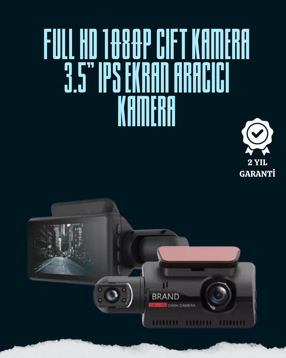 Çift Lensli Araç İçi Kamera – Park Koruma Gece Görüş ve Tarih Damgası