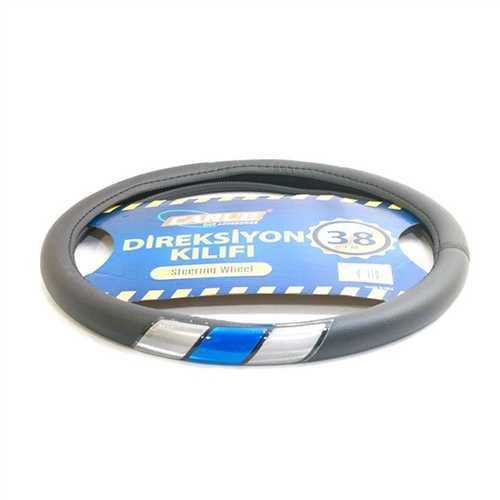 Direksiyon Kilifi 38Cm Siyah-Mavi-Sedef Desenli Fosforlu