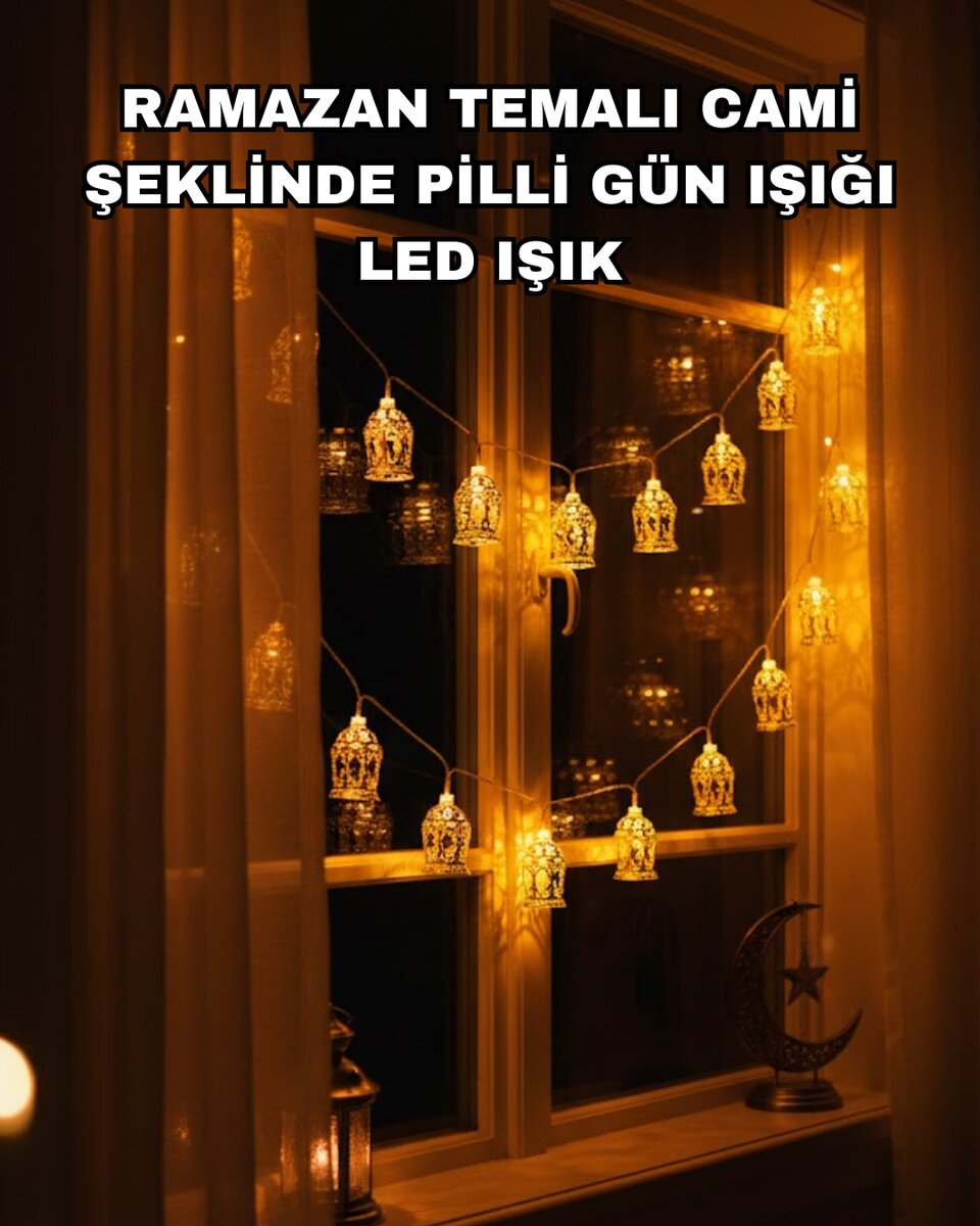 Ev Dekoru İçin Ramazan LED Işık Pilli Sıcak Sarı Cami Figürlü