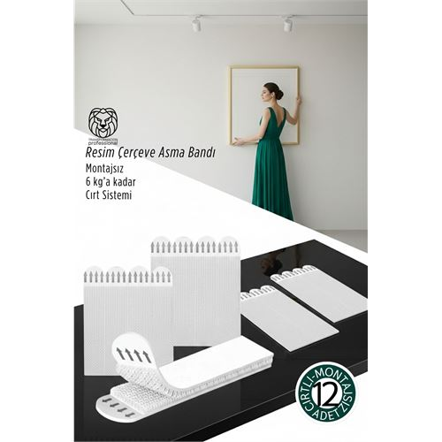 Güçlü Resim Çerçeve Asma Bandı 12’li Set – 6Kg Taşıma Kapasiteli Duvar Delmeyen Cırt Sistemi