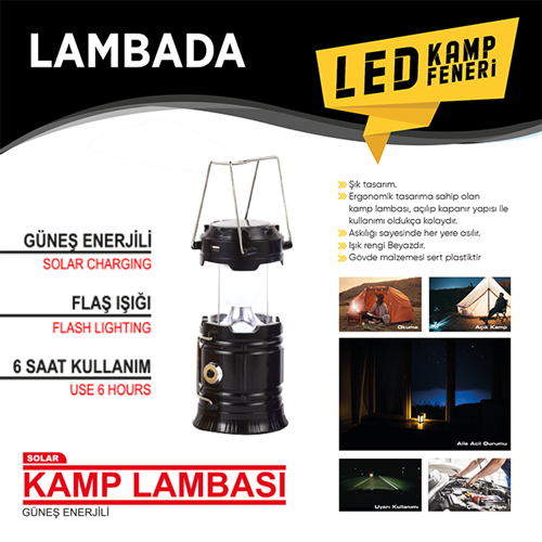 Kamp Feneri Günes Enerjili Çakarli 9X14 Cm