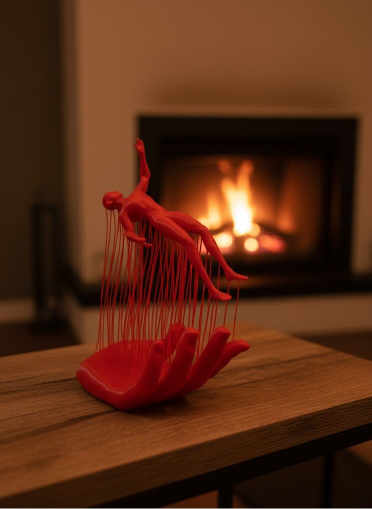 Kırmızı El ve İnsan Figürü Dekoratif Biblo Salon Ofis Raf ve Konsol Üstü İçin 12×18 cm