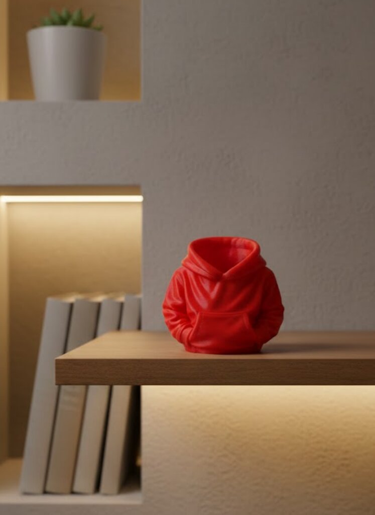 Kırmızı Hoodie Kalemlik 10×10 cm Masa Üstü Düzenleyici