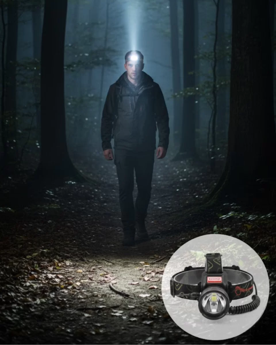 LED Sensörlü Şarjlı Kafa Feneri LCD Ekranlı 30W Güçlü Işık
