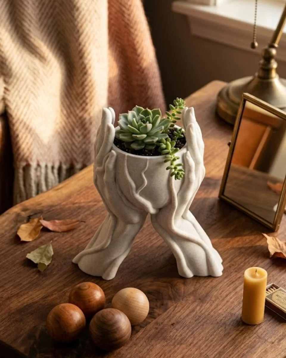 Minimalist El Tasarımlı Dekoratif 3D Saksı Vazo Modern Masa Dekoru