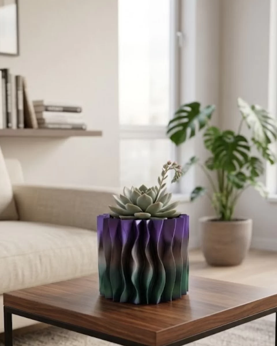 Modern Dalgalı Tasarımlı Mor 3D Dekoratif Vazo Ev Ofis Dekoru